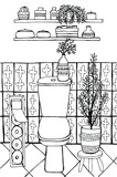 Vecteur Stock Toilet Colouring Page Cute Hand Drawn Toilet Colouring Page For Children And Adults Vector Coloring Book Toilet Bathroom Lavatory Cozy Home Decor House Plants Shelves With Bottles Vases Adobe Stock